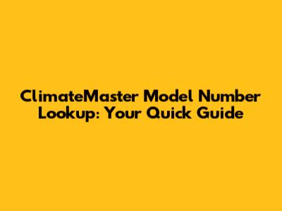ClimateMaster Model Number Lookup: Your Quick Guide