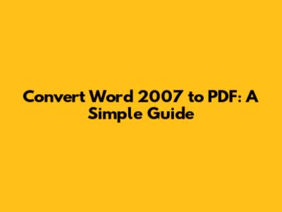 Convert Word 2007 To PDF: A Simple Guide
