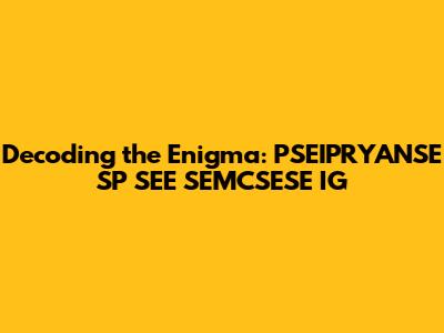 Unraveling the Mystery of PSEIPRYANSE SP SEE SEMCSESE IG