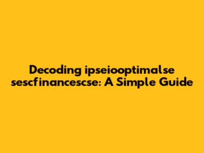 Decoding Ipseiooptimalse Sescfinancescse: A Simple Guide