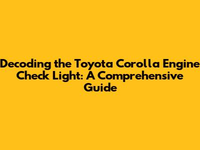 Decoding The Toyota Corolla Engine Check Light: A Comprehensive Guide