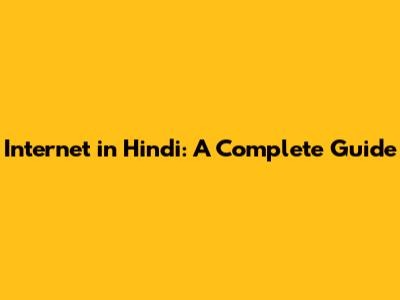 Internet In Hindi: Your Complete Guide