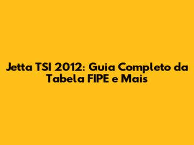 Jetta TSI 2012: Se você está procurando informações sobre o valor da Tabela FIPE do Jetta TSI 2012, este guia completo é perfeito para você. Vamos mergulhar nos detalhes, desmistificando a Tabela FIPE e explorando tudo o que você precisa saber sobre o Jetta TSI 2012, desde o preço até dicas valiosas para uma compra ou venda bem-sucedida. O Jetta TSI 2012 é um carro que ainda atrai muitos olhares, combinando design elegante, bom desempenho e uma reputação de confiabilidade. Mas, como determinar o valor justo para esse veículo no mercado atual? É aí que a Tabela FIPE entra em cena.