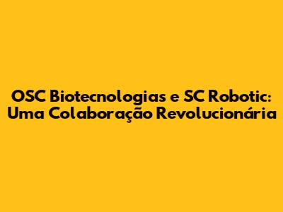 OSC Biotecnologias E SC Robotic: Uma Colaboração Revolucionária
