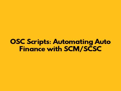OSC Scripts: Automating Auto Finance With SCM/SCSC