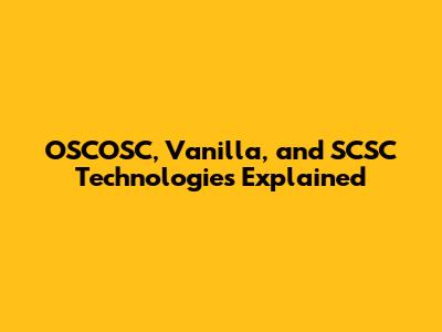 OSCOSC, Vanilla, And SCSC Technologies Explained