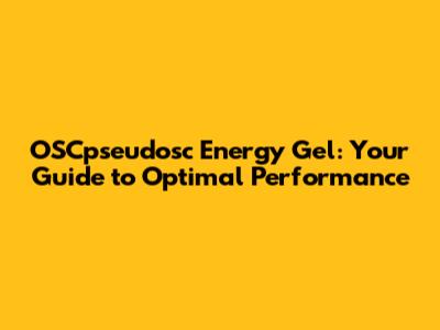 OSCpseudosc Energy Gel: Your Guide To Optimal Performance
