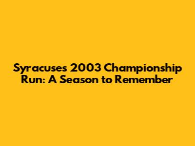 Syracuse's 2003 Championship Run: A Season To Remember