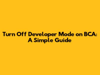 Turn Off Developer Mode On BCA: A Simple Guide